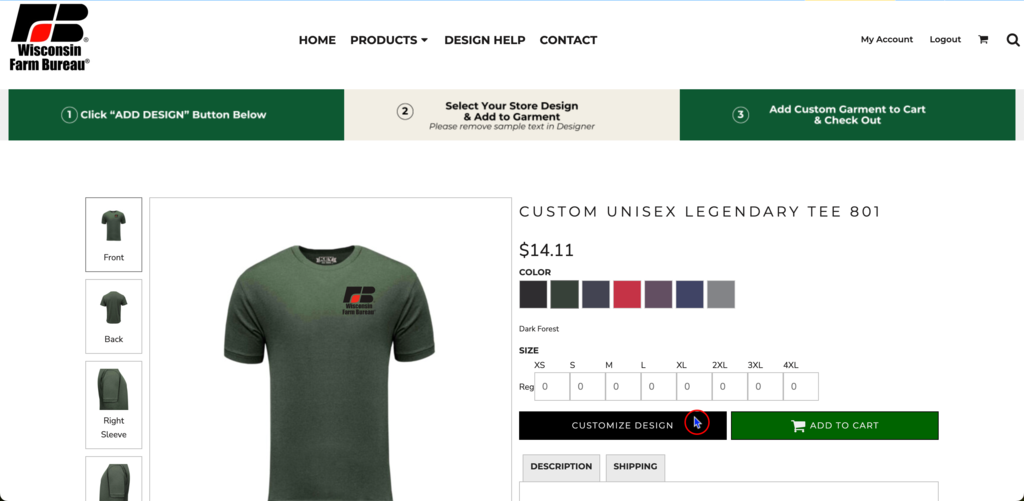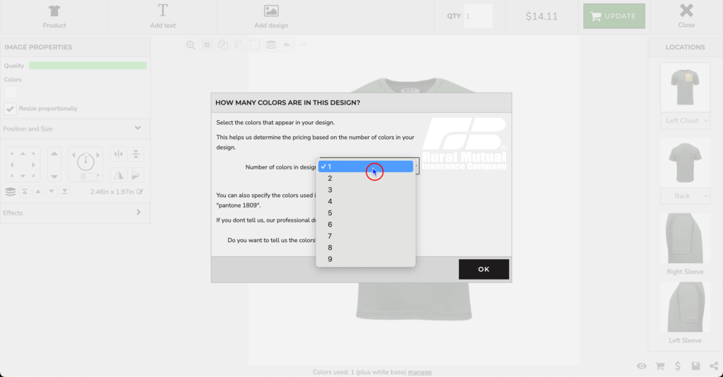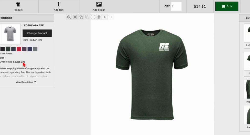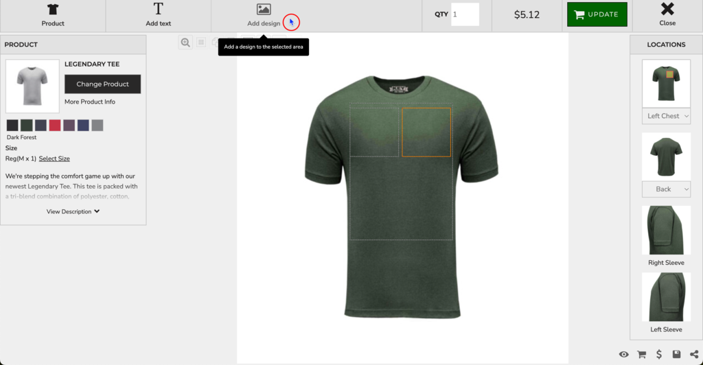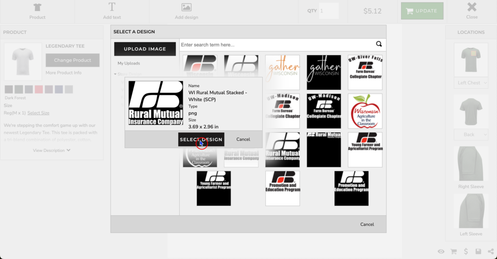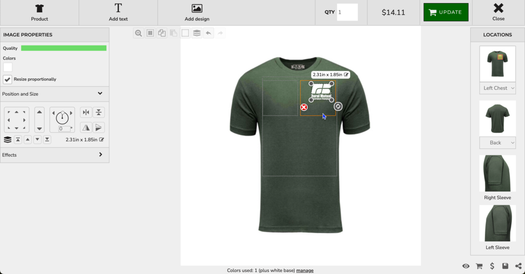 Note: In the left Image Properties panel, the Designer toggles allow you to adjust placement and size of the design.