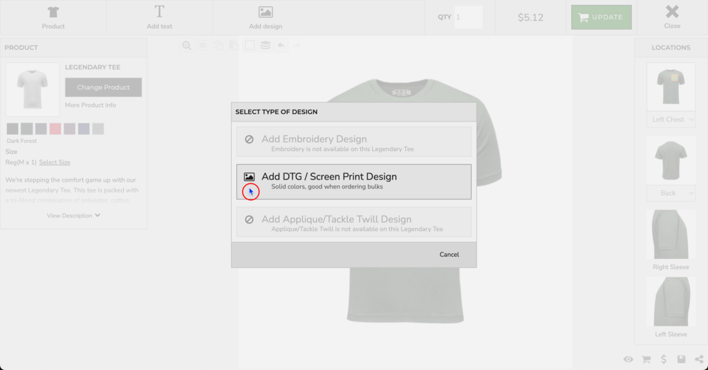 Your select design will drop on the garment.
